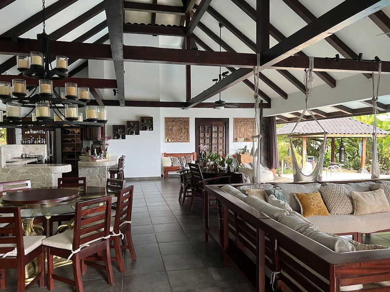Discover the unparalleled charm of Hamsa Villas, nestled in the captivating rainforest of South Pacific Costa Rica. Our luxurious villas seamlessly blend Balinese elegance with the wild beauty of Costa Rica, redefining tropical living. With 9 exquisitely designed bedrooms within charming casitas, your group, multi-family, or retreat gathering will find both privacy and serenity. The main communal space serves as a sanctuary for togetherness, while the expansive deck offers breathtaking Pacific Ocean vistas extending beyond the lush rainforest canopy.